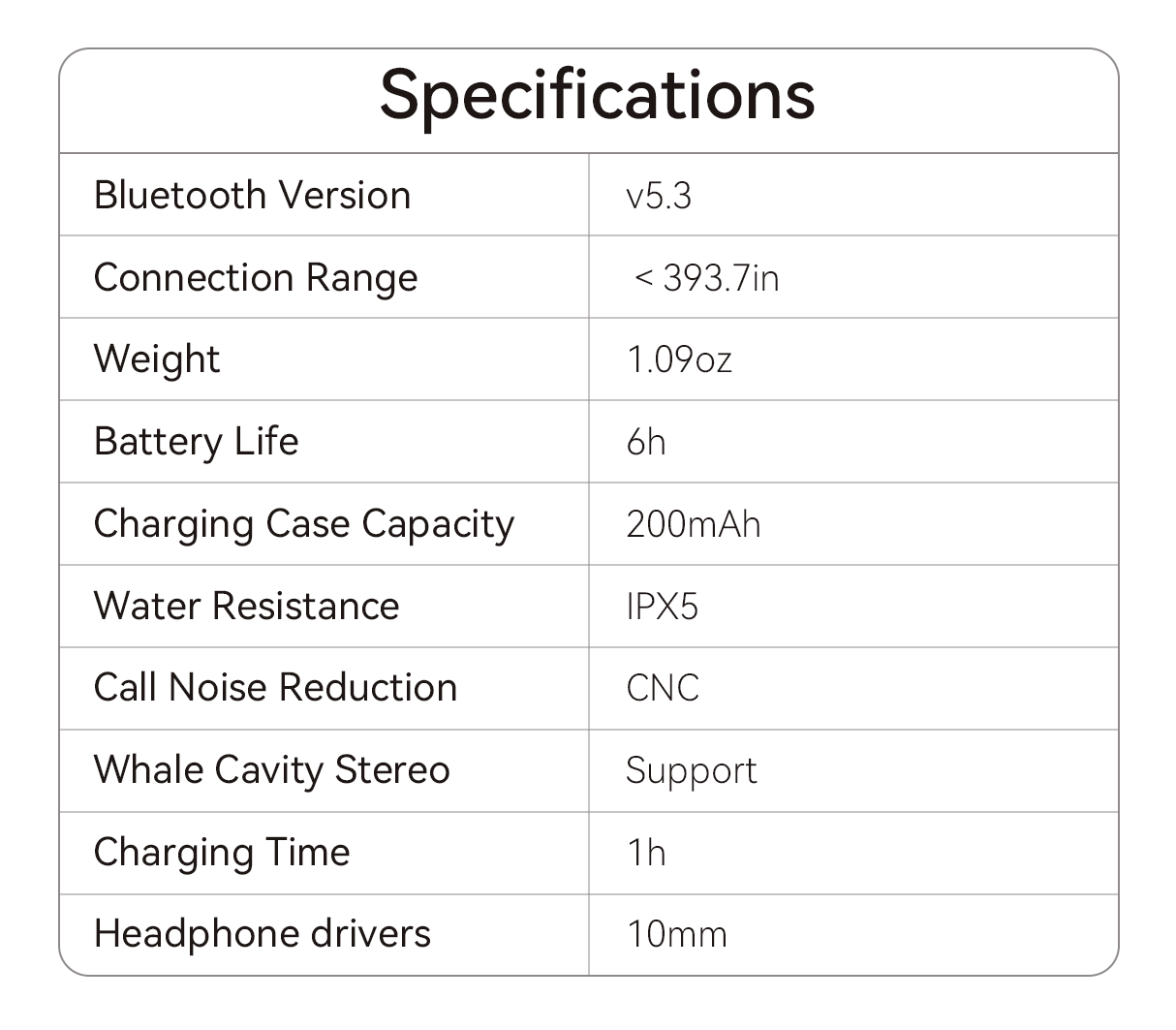 - Long Battery & Charging Case — 24h playtime, 480h standby, fast charging