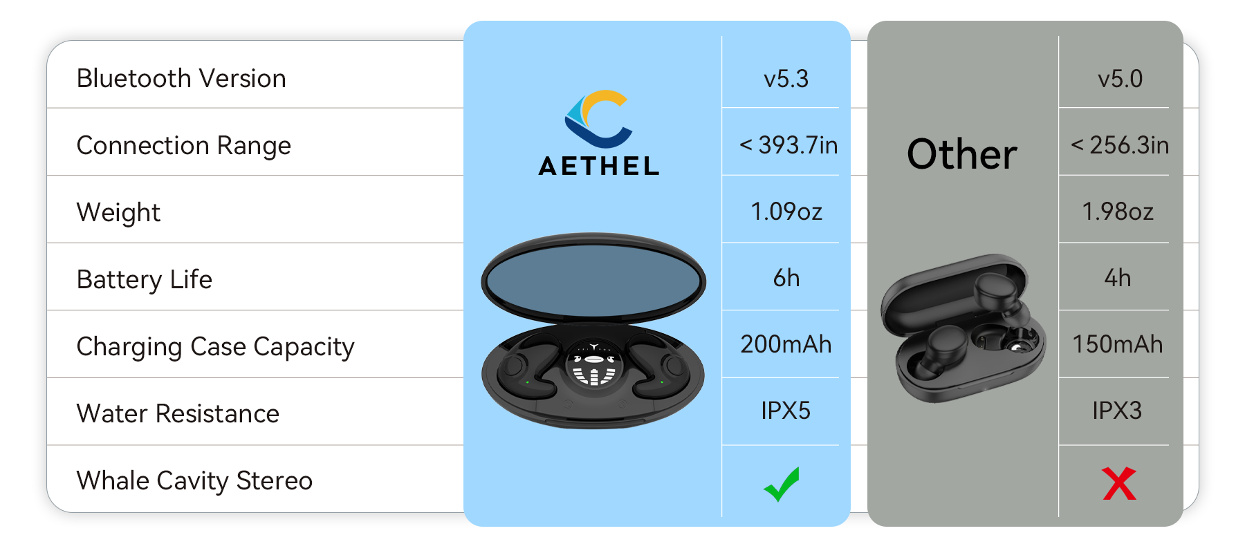 Thanks to the newly upgraded IPX5 waterproof technology, you get professional-grade protection. Whether it's heavy sweat or an unexpected downpour, Aethel shrugs off the moisture and splashes. This guarantees high durability, allowing you to wear them confidently in any environment and continuously enjoy a pure audio experience.